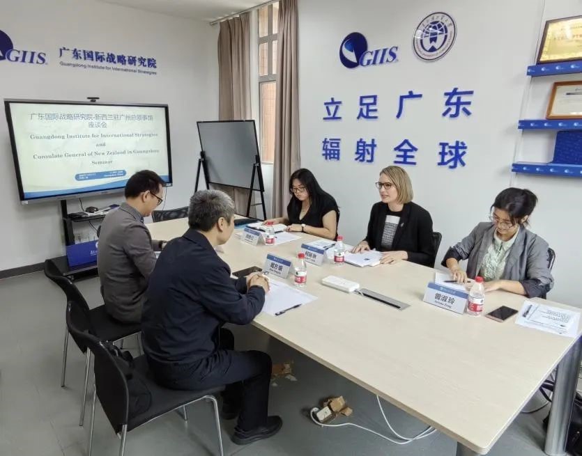参加交流活动的还包括新西兰驻广州总领馆副总领事周艳红(Kerrianne Joe)、新西兰驻广州总领事馆政策顾问曾淑玲(Serena Zeng)和广东国际战略研究院外事秘书彭科明。