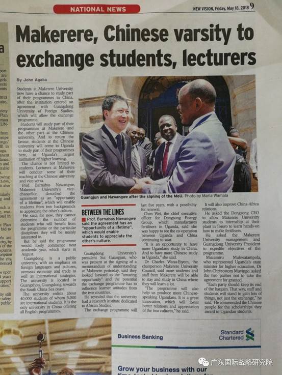乌干达最大日报《新愿景报》全版报道了隋广军一行访问马克雷雷大学的消息;乌干达国家电视台也长时间报道了隋广军一行访问马克雷雷大学的全过程,马克雷雷大学校长Barnabas Nawangwe在接受采访中说到,这次交流合作对中-非高等教育、科技、投资合作等方面都具有推动作用和深远意义。